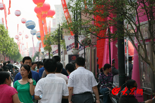 泉城路上各商家展開各種促銷活動