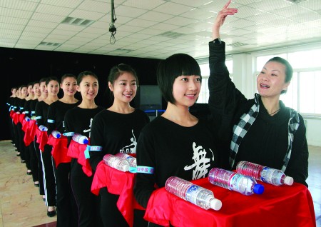 25日,在青島第十二中學(xué),十一運(yùn)會冰上項(xiàng)目14名頒獎禮儀志愿者正在參加禮儀培訓(xùn)。據(jù)介紹,這些禮儀志愿者將在全運(yùn)會短道速滑和花樣滑冰的比賽中提供嘉賓引導(dǎo)、運(yùn)動員引導(dǎo)、持獎牌、持鮮花、持吉祥物等禮儀志愿服務(wù),4月3日將正式亮相全運(yùn)會賽場。 本報(bào)記者 楊寧 攝