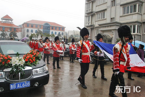 這場婚禮共有28名“士兵”隊(duì)伍,花費(fèi)約1萬元。