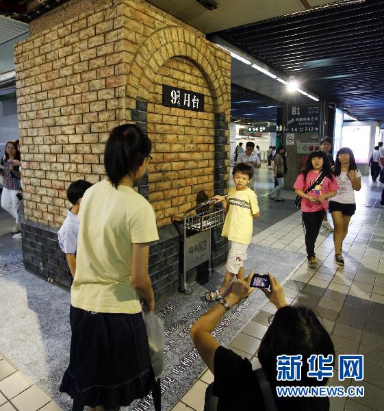 7月15日,一名小朋友在臺北火車站“九又四分之三月臺”前拍照留念。 為了給電影《哈利·波特與死亡圣器(下)》在臺灣首映造勢,臺北火車站中一處客流較多的地點出現了如同電影中“九又四分之三月臺”的場景,吸引來往乘客紛紛拍照留念。 新華社發