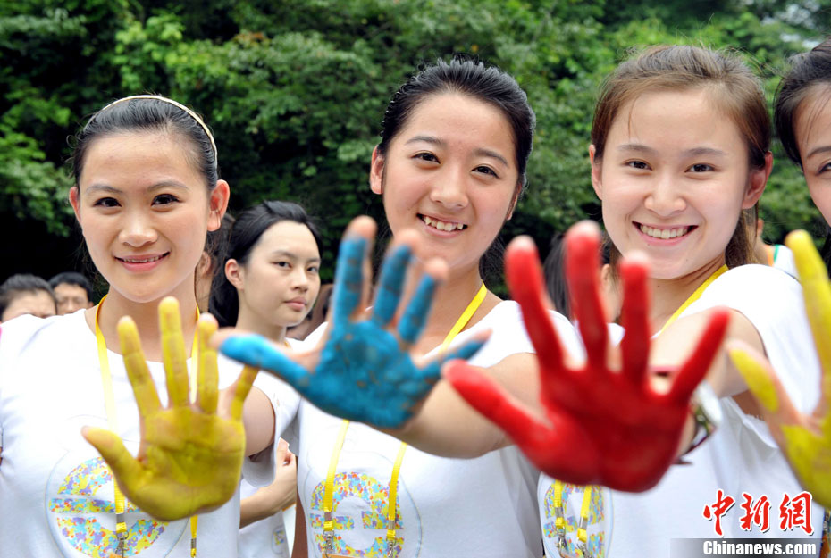 7月18日,“點亮青春”第26屆世界大學生夏季運動會開閉幕式引導員集訓營在德慶盤龍峽森林度假區開營。來自中國23個城市103所院校160名美女大學生在此展開集訓,包括軍訓、儀態、形體、微笑等。中新社發 陳文 攝