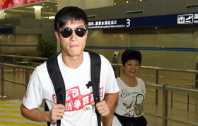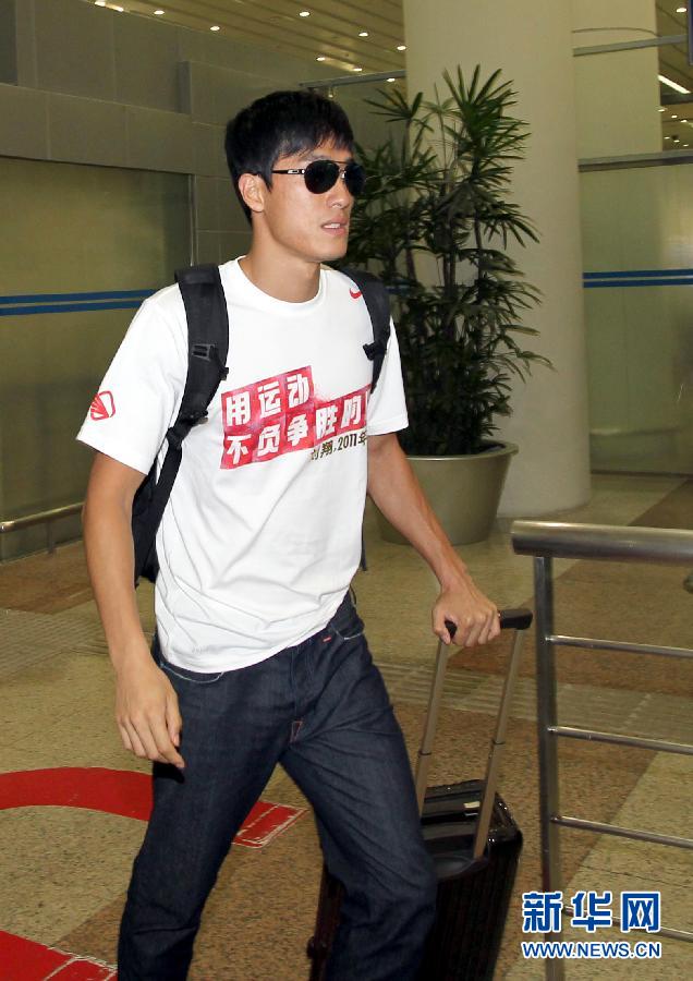 8月31日,劉翔步出上海浦東國際機場。當日,在韓國大邱參加完田徑世錦賽的劉翔回到上海。 新華社記者凡軍攝