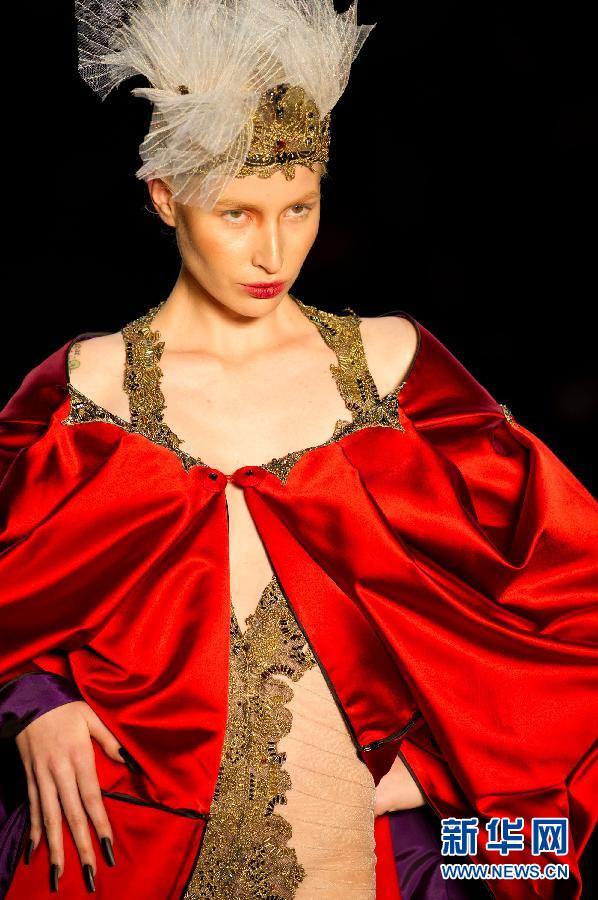 1月23日,模特在圣保羅時裝周上展示利諾·維拉萬圖拉設計的作品。當日,巴西著名時裝設計師利諾·維拉萬圖拉在圣保羅時裝周上發布2012年冬季系列,作品以濃重的裝飾風格,刻畫了一個充滿魔幻主義色彩的世界。新華社記者翁忻旸攝