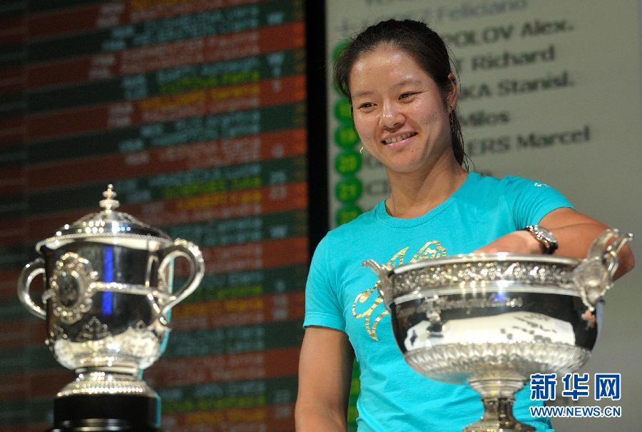 5月25日,衛冕冠軍、中國選手李娜在抽簽儀式上為男子比賽抽簽。