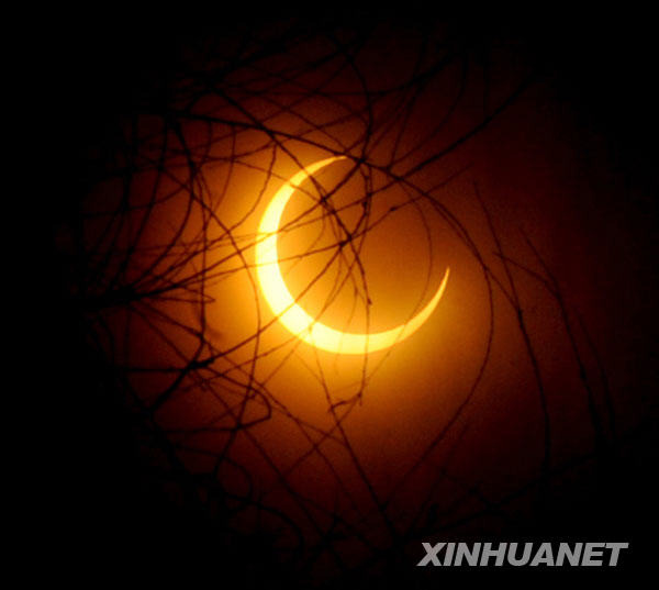 這是1月15日下午5時左右在河南省鄭州市拍攝的日環食景象。新華社記者朱祥攝