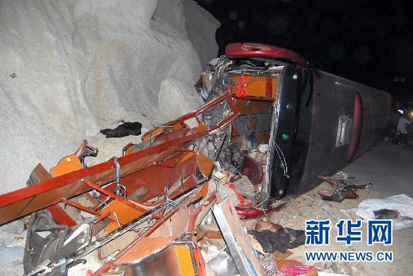 3月16日凌晨拍攝的沈海高速公路泉州惠安路段交通事故現場。 3月16日凌晨1時左右,沈海高速公路泉州惠安路段發生一起重大交通事故,一輛由福建莆田市開往漳州的客車與一輛小車追尾,翻出護欄,造成7人死亡、11人受傷。目前傷者正在醫院接受治療,事故原因正在進一步調查中。新華社發(顏杰 攝)