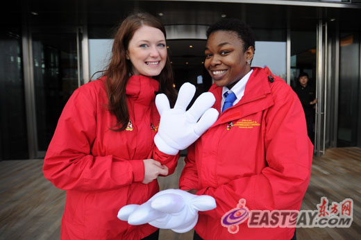迪士尼的工作人員正在歡迎受邀參加開工典禮的嘉賓和媒體的到來。