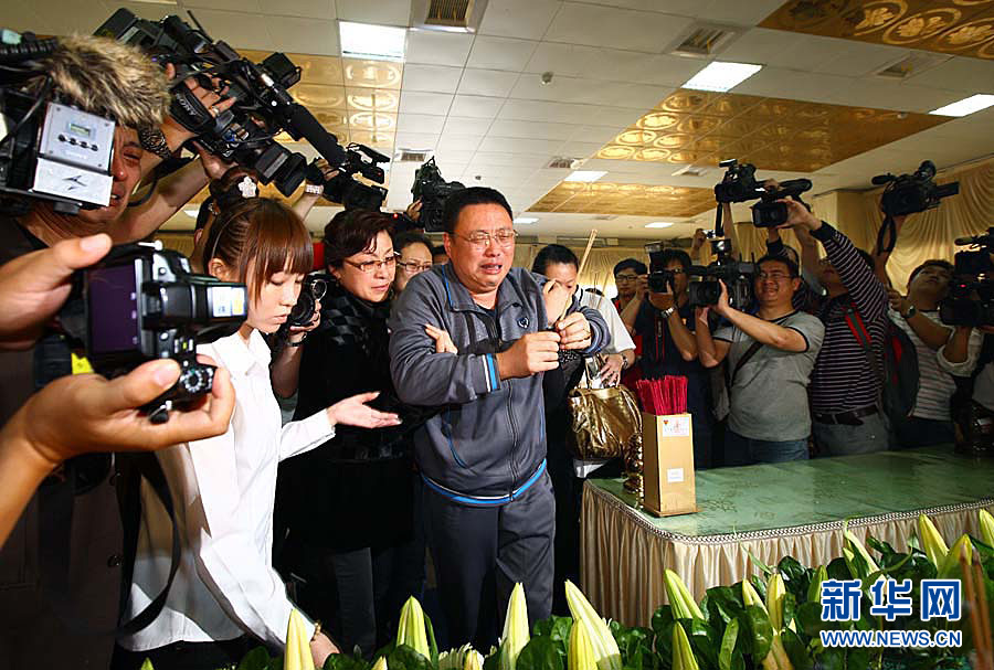 4月29日,一位遇難者親屬在臺灣嘉義市殯儀館祭拜逝去的親人。當天上午,在阿里山火車事故中遇難的兩位山東籍游客的親屬抵達嘉義處理有關事宜。 新華社記者龔兵攝