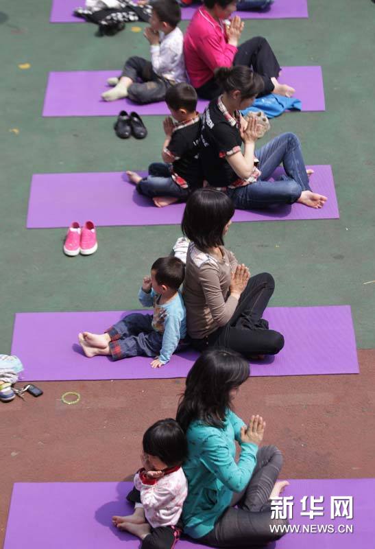 5月5日,襄陽(yáng)市商業(yè)第二幼兒園的小朋友與家長(zhǎng)一起學(xué)習(xí)瑜珈。 當(dāng)日,湖北省襄陽(yáng)市商業(yè)第二幼兒園邀請(qǐng)家長(zhǎng)來(lái)到幼兒園,在專業(yè)瑜珈教練的指導(dǎo)下,和孩子體驗(yàn)親子瑜珈,在輕松的氛圍里放松身心。 新華社發(fā)(王虎 攝)