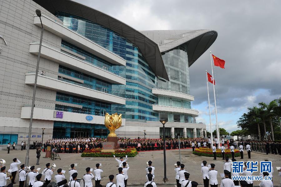 7月1日,香港金紫荊廣場舉行升旗儀式,慶祝香港回歸祖國十五周年。新華社記者張金加攝