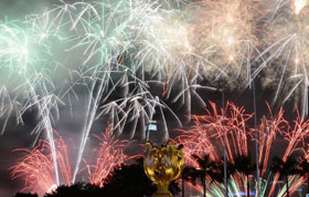 7月2日,游客在山西吉縣黃河壺口瀑布景區拍照留念。當日,為了配合小浪底水庫調水調沙和降低潼關高程,黃河中游萬家寨水庫加大下泄流量,高含沙洪水滾滾而下,黃河壺口瀑布水量猛增,主副瀑布連成一線,寬度達到二百余米,再現壯觀黃色瀑布群,吸引眾多游客前來觀瀑。新華社發(呂桂明 攝)