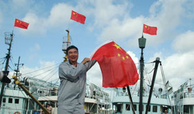 7月15日,中國(guó)漁船船隊(duì)抵達(dá)永暑礁。當(dāng)日17時(shí)左右,海南省今年最大規(guī)模30艘漁船船隊(duì)抵達(dá)南沙永暑礁,中國(guó)漁政310船及時(shí)趕到現(xiàn)場(chǎng)開展護(hù)漁工作。漁船船隊(duì)7月12日駛離三亞港,奔赴南沙群島海域進(jìn)行捕撈作業(yè)生產(chǎn),預(yù)計(jì)前后將歷時(shí)20天。 新華社記者 王存福 攝