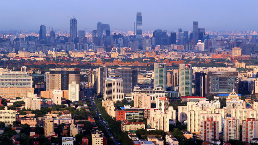 7月22日,記者從中央電視塔拍攝的北京城的一角。(張雷)