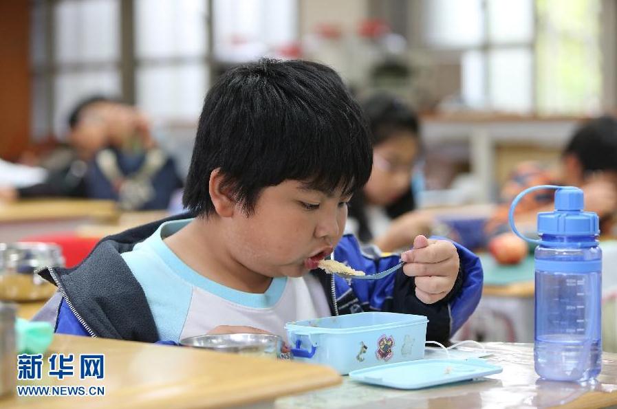 臺北大佳小學的學生在享用午餐。學生“營養(yǎng)午餐”的問題近來備受人們關注。而推行“營養(yǎng)午餐”已有一段時間的臺北市,在這方面有什么成功經驗? 新華社駐臺記者走進位于臺北市基隆河畔的大佳小學,現(xiàn)場采訪、體驗這里的“營養(yǎng)午餐”。新華社記者 邢廣利 攝