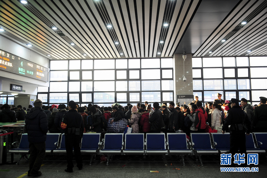 1月26日的1955次列車是農民工列車,此次列車由北京西開往漢口,西站發車時間為10:07,共售出車票1865張,其中大部分旅客都是農民工。為做好農民工列車的服務工作,北京西站增加進站口、候車大廳、候車室內的工作人員,及時引導農民工旅客到候車室候車,解答農民工旅客問詢。對于老幼病殘孕等重點旅客,及時引導到036愛心候車室,由036服務人員提供幫扶服務。新華網 李欣 攝