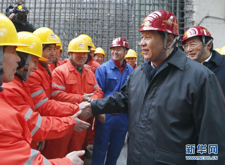 2月8日,中共中央總書記、中共中央軍委主席習近平來到地鐵施工現場、派出所、環衛站、出租客運公司,看望慰問堅守崗位的一線勞動者。這是習近平在地鐵8號線南鑼鼓巷站施工工地,慰問正在施工作業的農民工和工程技術人員。新華社記者 鞠鵬 攝
