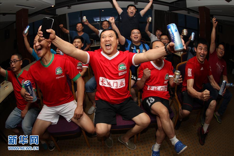 6月13日凌晨,河南省許昌市的球迷為2014年巴西世界杯上自己喜愛的球隊加油吶喊。 新華社發(牛書培 攝)