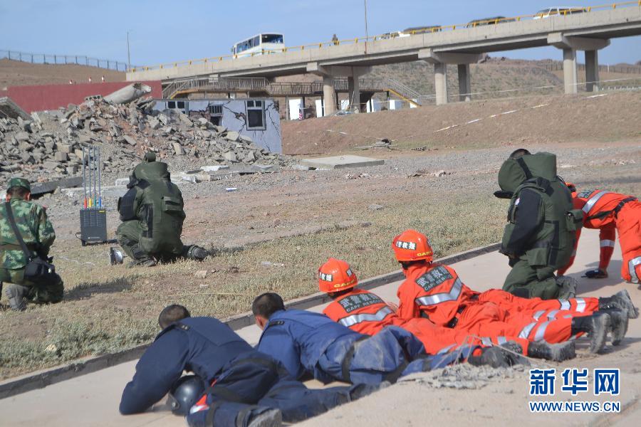 6月30日,為期一周的武警部隊(duì)“衛(wèi)士—14·天山”大規(guī)模反恐、維穩(wěn)實(shí)兵演習(xí)圓滿結(jié)束。在新疆烏魯木齊、伊犁、阿克蘇、喀什、和田、圖木舒克等地舉行的這場(chǎng)演習(xí)中,駐疆武警總隊(duì)、兵團(tuán)指揮部、機(jī)動(dòng)師、院校和森林、交通、黃金警種部隊(duì)以及“雪豹”“獵鷹”兩支反恐國(guó)家隊(duì)和多支駐訓(xùn)部隊(duì)參演。演習(xí)中,特戰(zhàn)隊(duì)員對(duì)“暴恐分子”放置的爆炸物實(shí)施現(xiàn)場(chǎng)排爆(6月26日攝)。 新華社發(fā)(王國(guó)銀 攝)