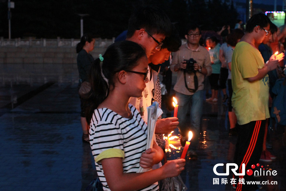 8月9日,魯?shù)榈卣鸷蟮牡谄邆(gè)晚上,市民手持蠟燭前往位于魯?shù)榭h城的魯?shù)閺V場為災(zāi)區(qū)祈福。雖然天空下著雨,但市民為魯?shù)槠砀5臒崆椴粶p。