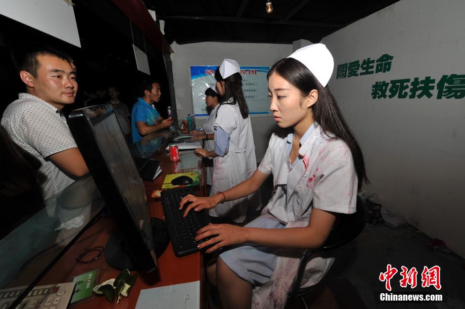 8月25日,“恐怖醫院”主題游戲館亮相山西太原,吸引了眾多年輕人體驗驚悚的冒險之旅。中新社發 韋亮 攝