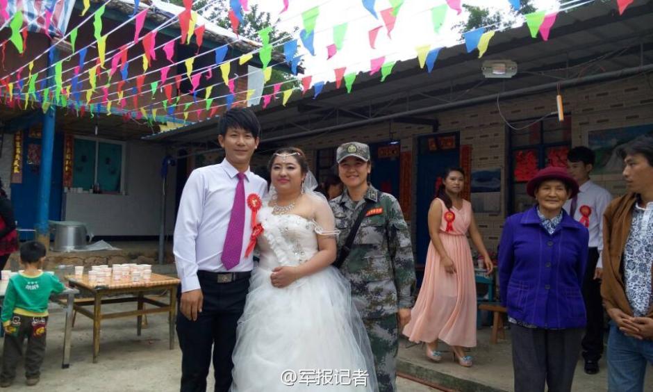 據軍報記者微博10月14日報道,芒費村村民楊家學和龔海燕,感恩救災子弟兵,邀請云南某預備役師20多名官兵參加他們今天下午的婚禮!官兵為2人搭建帳篷,布置“洞房”,幫著洗菜、傳菜,擔當婚禮主持,還送上禮物。新娘龔海燕說,這是最特別的婚禮,她一輩子難忘!