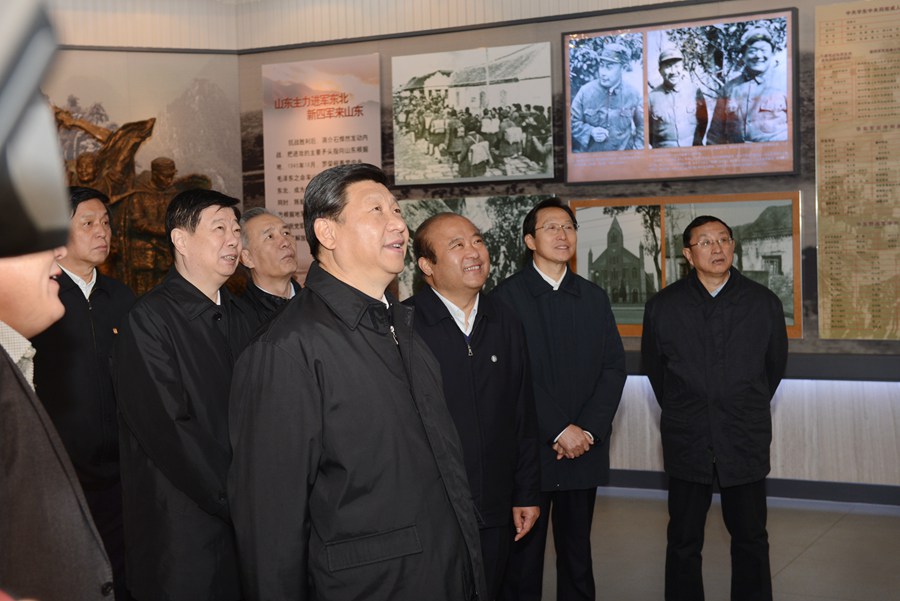 2013年11月25日,習近平在臨沂市華東革命烈士陵園,參觀沂蒙精神展。