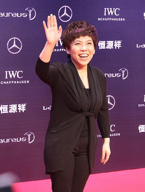 4月15日,參加頒獎典禮的鄧亞萍走上紅毯。 當(dāng)日,2015勞倫斯世界體育頒獎典禮在上海舉行。 新華社記者陳飛