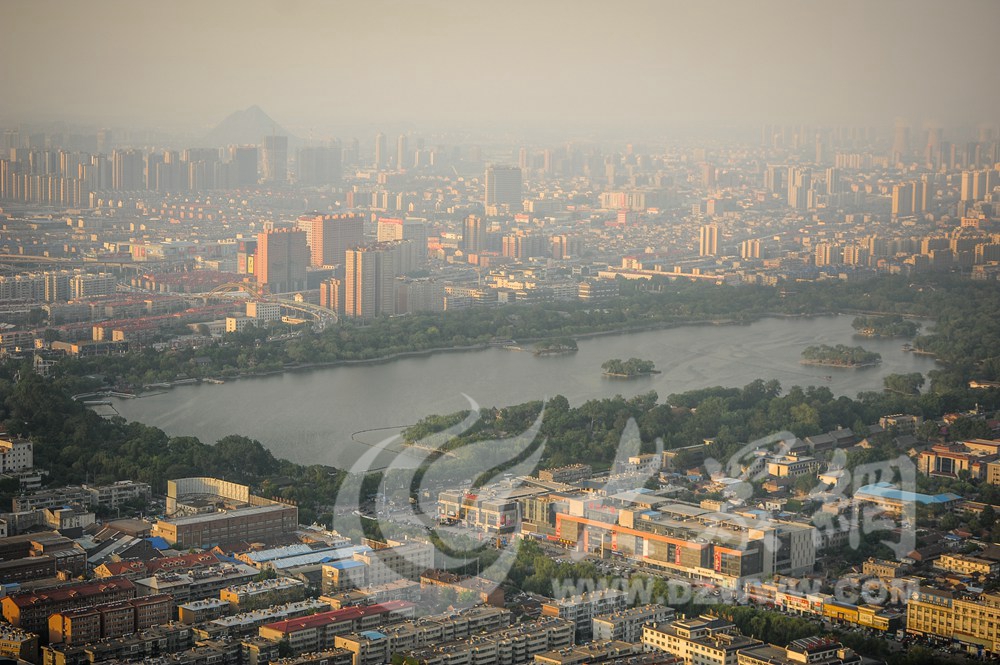 2015年5月15日,記者站在300米高的一座大廈樓頂俯瞰濟南。在300米的高度,城市、交通、天下第一泉盡收眼底,鏡頭記錄了濟南這座泉城的繁忙節(jié)奏和熱鬧喧囂,以及經(jīng)濟發(fā)展的蓬勃生機。圖為天下第一泉大明湖。王長坤