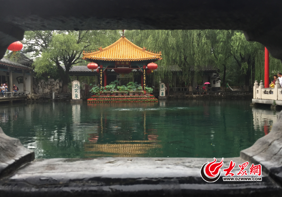8月4日,雨中的濟(jì)南趵突泉畔。當(dāng)日,趵突泉水位為27.78米,相比3日上漲了12厘米,高出紅色警戒線18厘米。