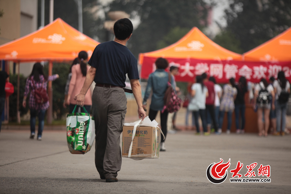 9月5日,山東大學中心校區,家長在校園里為孩子搬運行李。當日,山東大學本科新生開始報到入學。隨同新生而來的是一支龐大的家長隊伍。校園里到處可見家長們為孩子忙碌的身影。大眾網記者 王長坤 攝