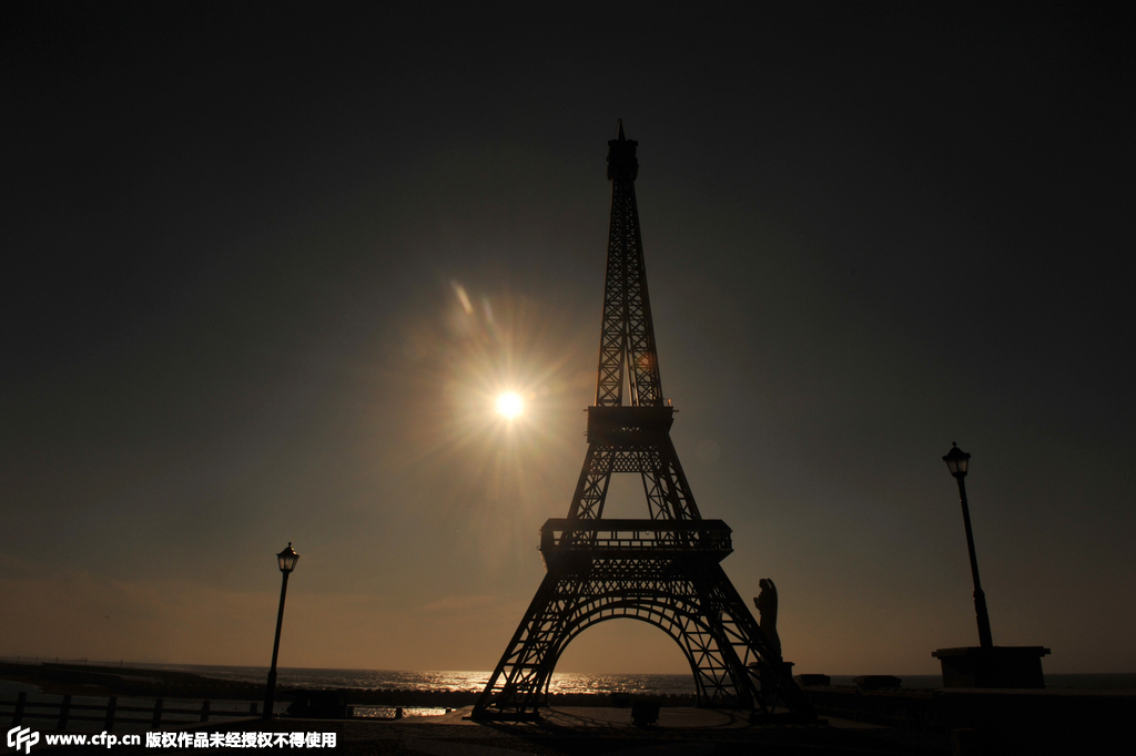 2015年9月15日,山東省煙臺龍口市,一處“山寨版”埃菲爾鐵塔吸引了不少外地游客的目光。“山寨版”埃菲爾鐵塔效仿法國埃菲爾鐵塔制作