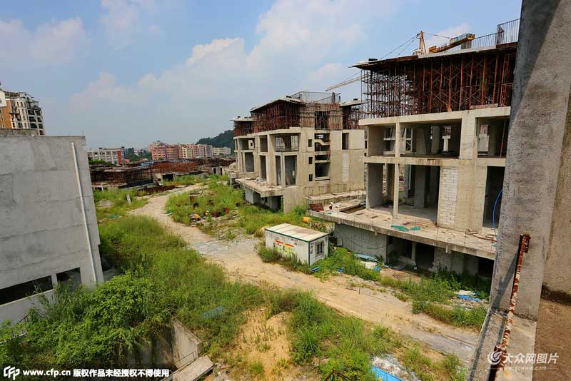 2015年9月28日,記者走訪了2005年廣州地王項目,2013中國內地10大超級豪宅榜前三的“大一山莊”別墅群,目前大一山莊別墅群內建好的主體毛坯房多數已經處于停工狀態,生銹的鋼筋,簡易的樓梯扶手,工棚人去屋空,私家泳池內和地下室的臟水已然變色,周圍和樓頂的雜草如荒山野林包圍了整個別墅群。