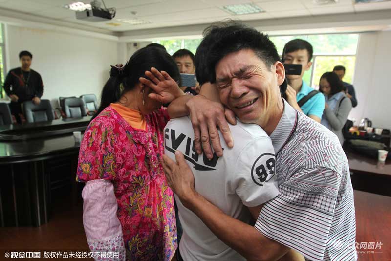 2015年10月13日,深圳,小川(化名)的親生父母從四川涼山趕到深圳,與失散20年的小川相見,相擁而泣。