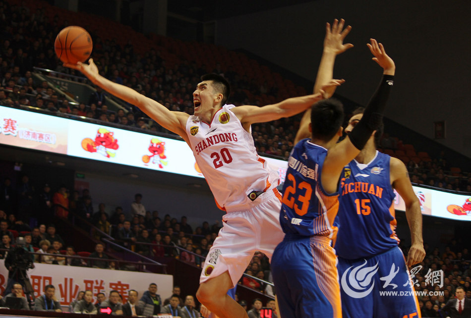 大眾網11月8日訊 2015-2016賽季CBA常規賽全面打響,山東高速主場114-116惜敗四川隊,遭遇本賽季首敗。圖為陶漢林強行上籃打成2+1。