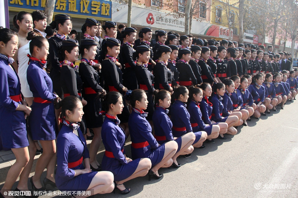 2015年12月4日,山東濱州,參加藝考的高三女生身著空姐制服拍合照。當日,山東省濱州市一家藝考培訓(xùn)學(xué)校的百余名高三女生不畏嚴寒,冒著零下四度的低溫裸露大腿拍攝空乘制服合照,不少過路司機索性停車拍照圍觀,只為一睹壯觀美腿陣容。