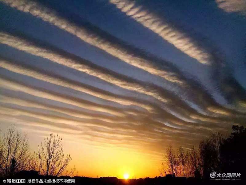 2016年2月17日,江西婺源、景德鎮傍晚天空中開始出現美麗的波浪狀云彩。