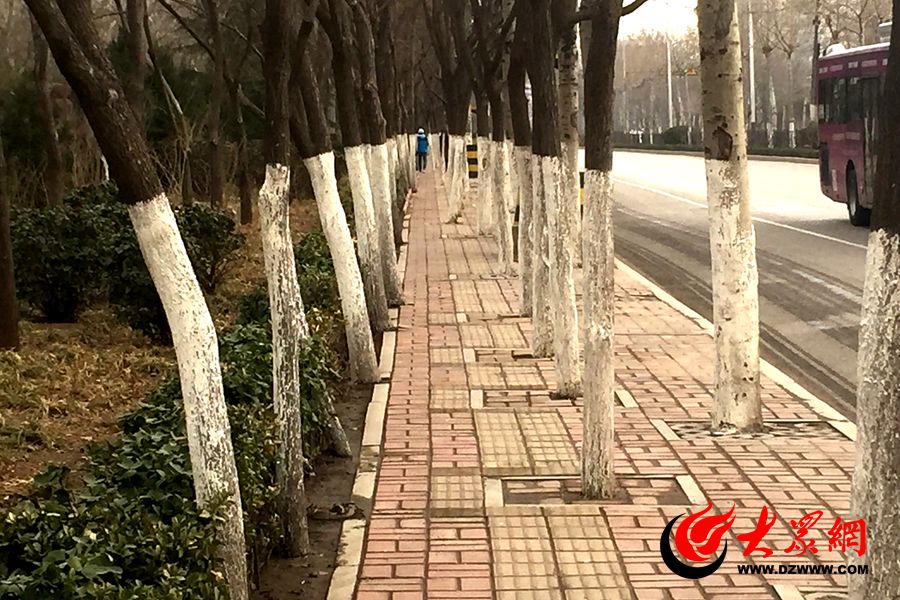 大眾網濟南2月19日訊(記者 孫博洋)有網友爆料稱,在濟南大學南校區南門西側的馬路旁,僅有300余米的人行橫道上栽了上百棵大樹,人行道上的盲道由于樹木的阻礙也歪歪斜斜,嚴重影響了路人的同行。