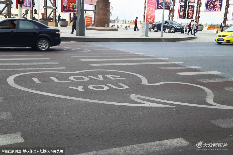 2015年3月3日,重慶街頭現“I LOVE YOU”愛心斑馬線。