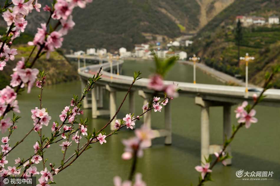 陽春三月,三峽庫區湖北省興山縣生態水上公路兩旁的油菜花、桃花、山花競相綻放,車輛穿梭其中,如在畫中行。