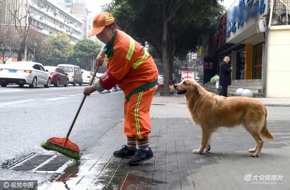 進入3月,氣溫回暖,成都市玉沙路上,一幕溫暖了過往行人的場景反復出現——人行道上,一名環衛大姐躬著背,掃起垃圾,身后,一只金毛狗寸步不離地跟上。一旦瞧見礦泉水瓶,金毛就撲過去,叼起瓶子后,跑回環衛工身邊邀功……