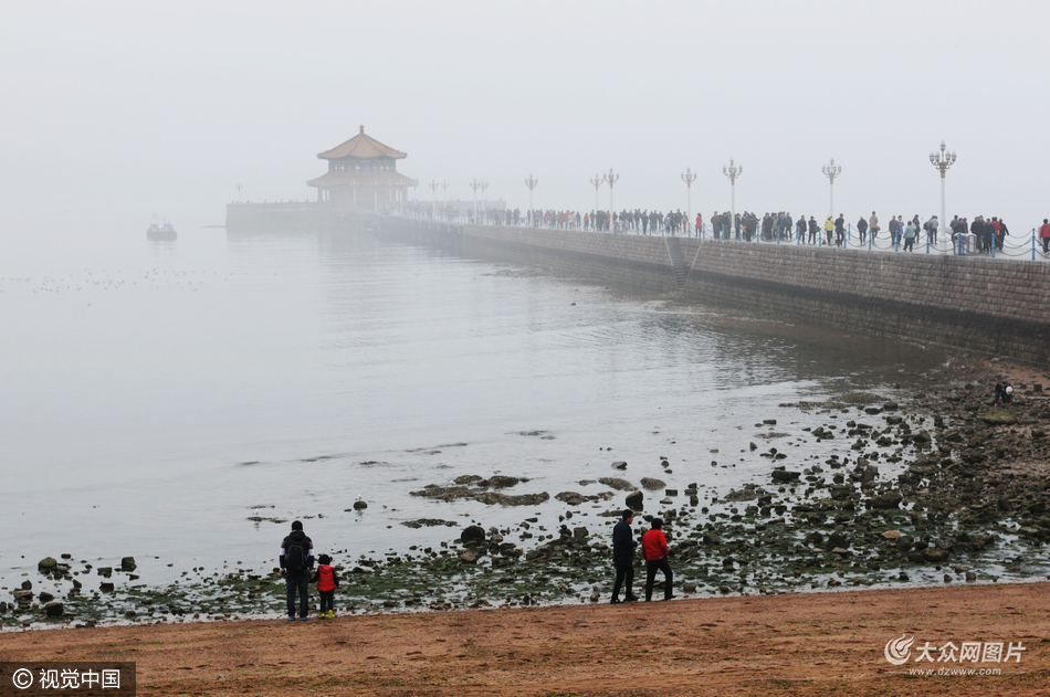 2016年03月18日,山東省青島市發(fā)布大霧黃色預(yù)警,沿海及部分地區(qū)已出現(xiàn)能見度低于500米的大霧,局部能見度不足200米。旅游景區(qū)棧橋一帶時(shí)而被大霧包圍,給游客帶來(lái)美輪美奐的霧中美景,仿若人間仙境。
