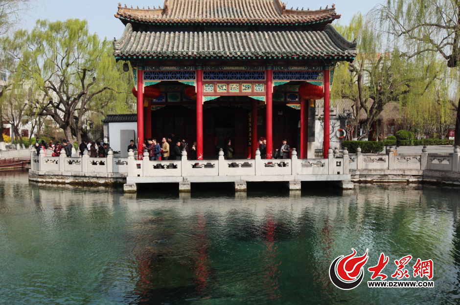 3月23日,游客在濟(jì)南趵突泉畔賞泉拍照。當(dāng)日,濟(jì)南趵突泉實時水位降至27.52米,跌破27.60米的紅色警戒線,面臨停噴危險。大眾網(wǎng)記者 王長坤 攝