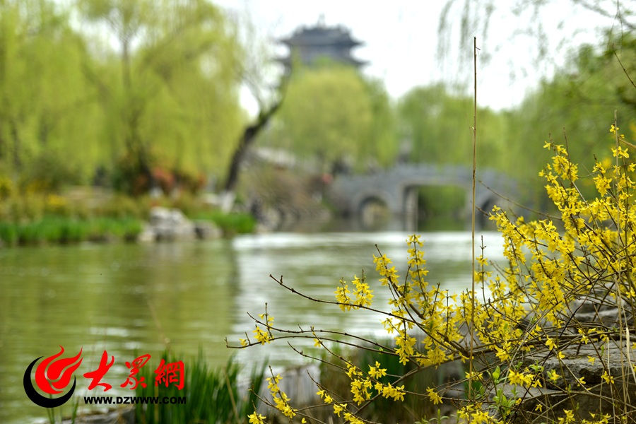 春天來到,大明湖邊的柳樹發芽,鮮花盛開與湖水建筑匯成了一幅美麗的畫卷。記者 孫博洋攝