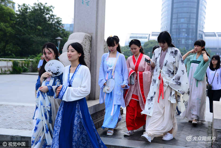 6月5日,為了迎接G20峰會,杭州拱宸橋運河景區開展“文化杭州我先行”市民活動,現場一群來自高校的美女們穿漢服與市民互動,古典氣質引來大家瘋狂追逐拍照,場面熱鬧。