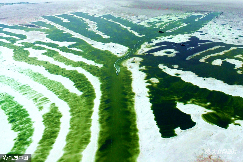 2016年08月12日早晨,青海省海西蒙古族藏族自治州,雖然是多云天,但從空中俯瞰有著“天空之鏡”之稱的青海茶卡鹽湖,風光旖旎,令人驚嘆。