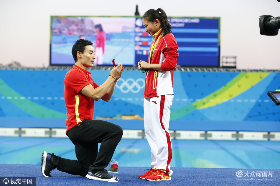 2016年8月14日,巴西里約,2016里約奧運(yùn)會(huì)跳水女子3米板決賽,秦凱現(xiàn)場(chǎng)向何姿求婚。