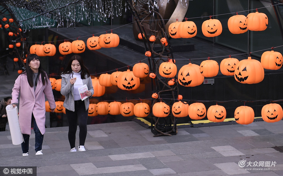 2016年10月22日,遼寧省沈陽(yáng)市,由百余個(gè)南瓜組成的“南瓜陣”亮相沈陽(yáng)街頭,吸引市民目光。