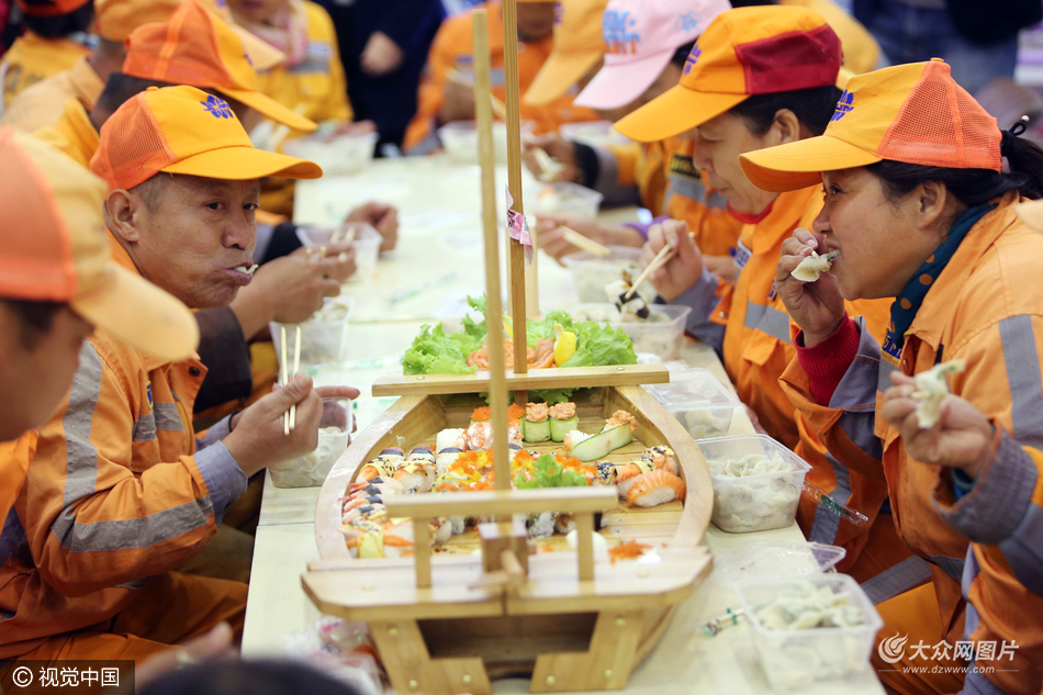 2016年10月25日,濟南市20多名環衛工圍坐在餐桌前,品嘗由愛心單位送來的壽司和他們親手包的餃子。當日,濟南市關愛環衛工愛心單位聯盟正式成立,旨在為辛勤的城市美容師們送上一份溫暖與愛心。