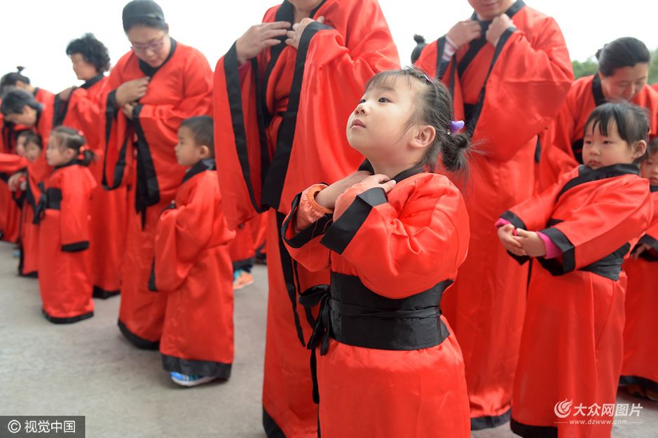 10月27日,一場(chǎng)別開(kāi)生面的學(xué)童入泮禮在青島國(guó)信體育場(chǎng)舉行,來(lái)自軍藝幼兒園的60多名小學(xué)童現(xiàn)場(chǎng)行拜孔禮、拜師禮、開(kāi)筆禮,感受?chē)?guó)韻雅禮。