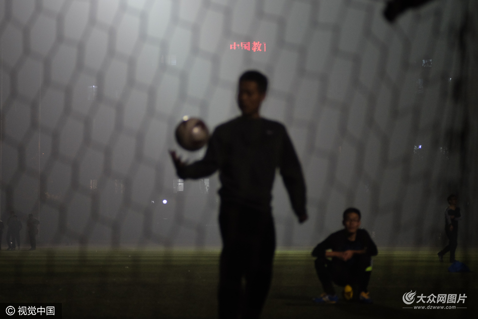 2016年11月18日,北京郵電大學田徑場,霧霾橙色預警、大霧黃色預警,傍晚十分,在霧霾中踢足球的人們,他們大多沒有佩戴任何防護措施
